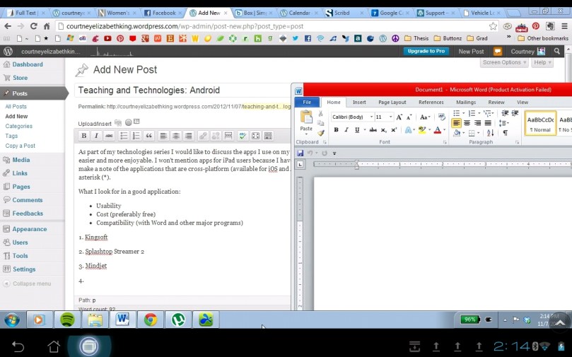 As a graduate student, I don’ t have the luxury of buying extra programs on a whim, especially if I might find that they don’t serve my purposes. The multitude of free, high-quality apps to choose from in the Google Play store makes owning an Android tablet a dream for me. I will say that I usually download 3-6 apps that all do essentially the same thing, try them each out, and then uninstall the ones that were not up to par.
